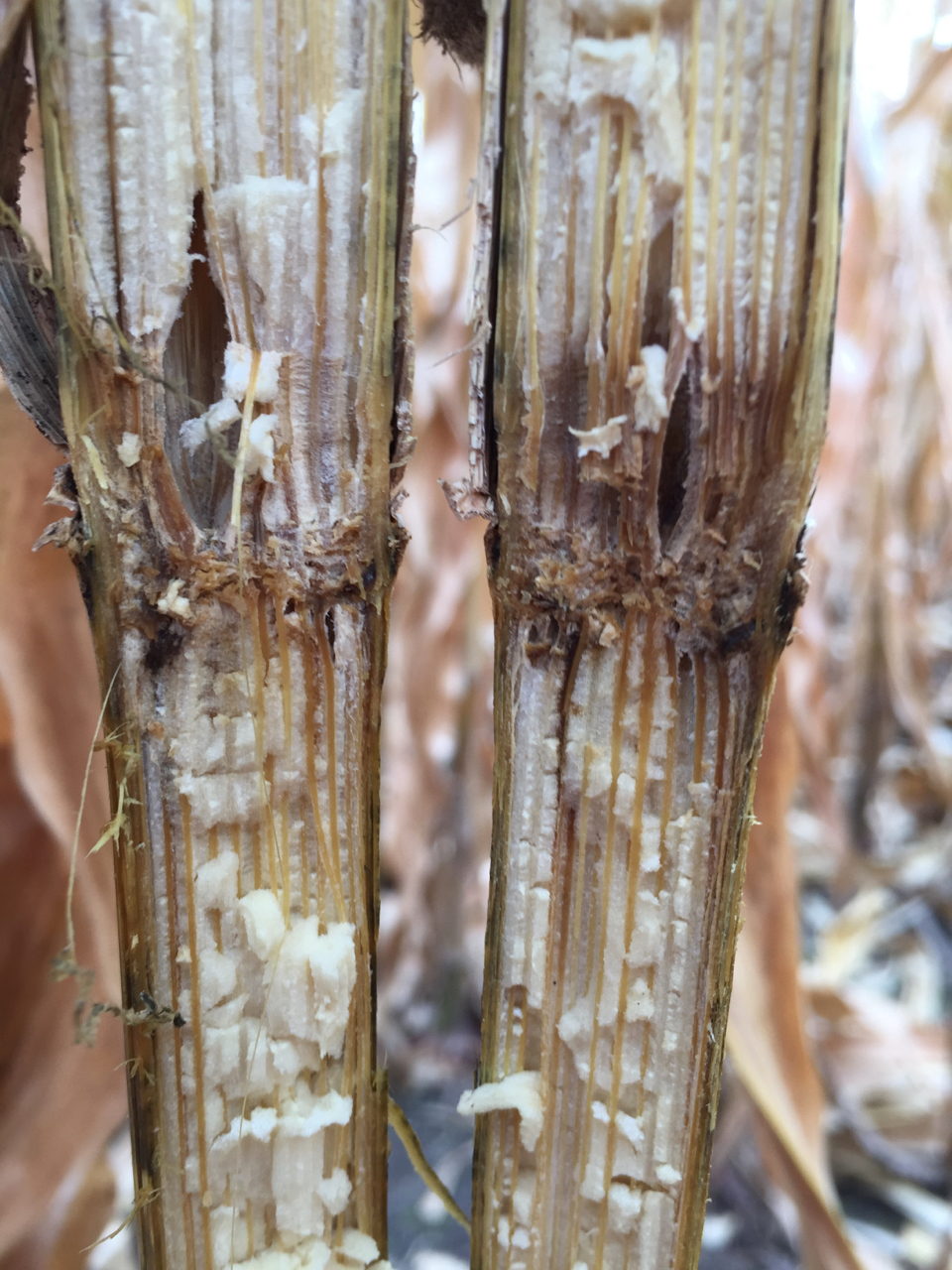 Fungicides are not recommended for managing stalk rots, directly. However, we have observed better standability of corn in years with heavy foliar disease pressure, where fungicides have been applied. This makes sense, because controlling heavy foliar disease allows the plant to continue to produce carbohydrates through photosynthesis. When heavy foliar disease pressure is left unchecked, corn plants can scavenge the stalks for resources predisposing corn plants to stalk rot diseases and a loss in stalk integrity.